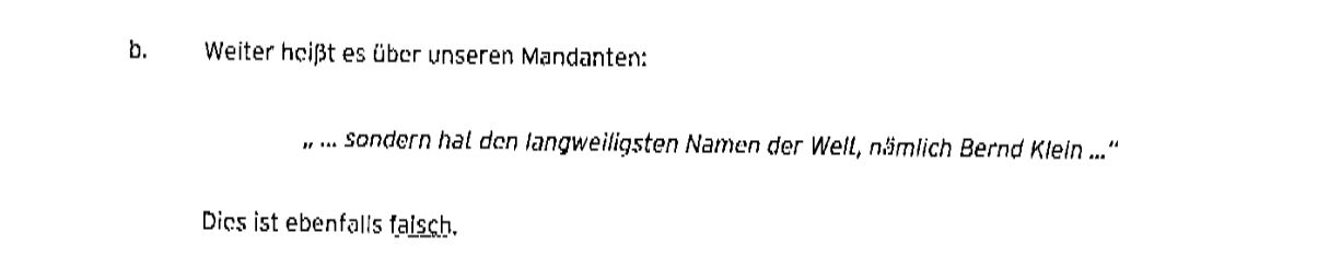Daraufhin bekam der Bayerische Rundfunk Post von den Anwälten von „Dr. Coldwell“, genau wie übrigens auch @walulis. „Dr. Coldwell“ würde ja gar nicht, wie von mir behauptet, einfach nur Bernd Klein heißen. Ein kurioser Ausschnitt aus dem Anwaltsschreiben: (3/6)