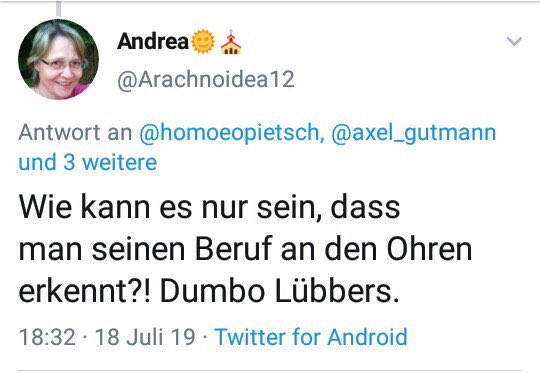 Grossmäulige, unreife, sich furchtbar langweilende Stänkertusse "Andrea 🌞 ⛪ @Arachnoidea12" kann es nicht lassen: