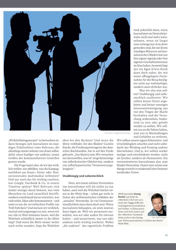 Journalismus im Neutralitätswahn - Warum wir endlich damit auhören sollten, nur abbilden zu wollen, "was ist". Mein Plädoyer für einen werteorientierten Journalismus in der aktuellen Ausgabe von "WDR Print".