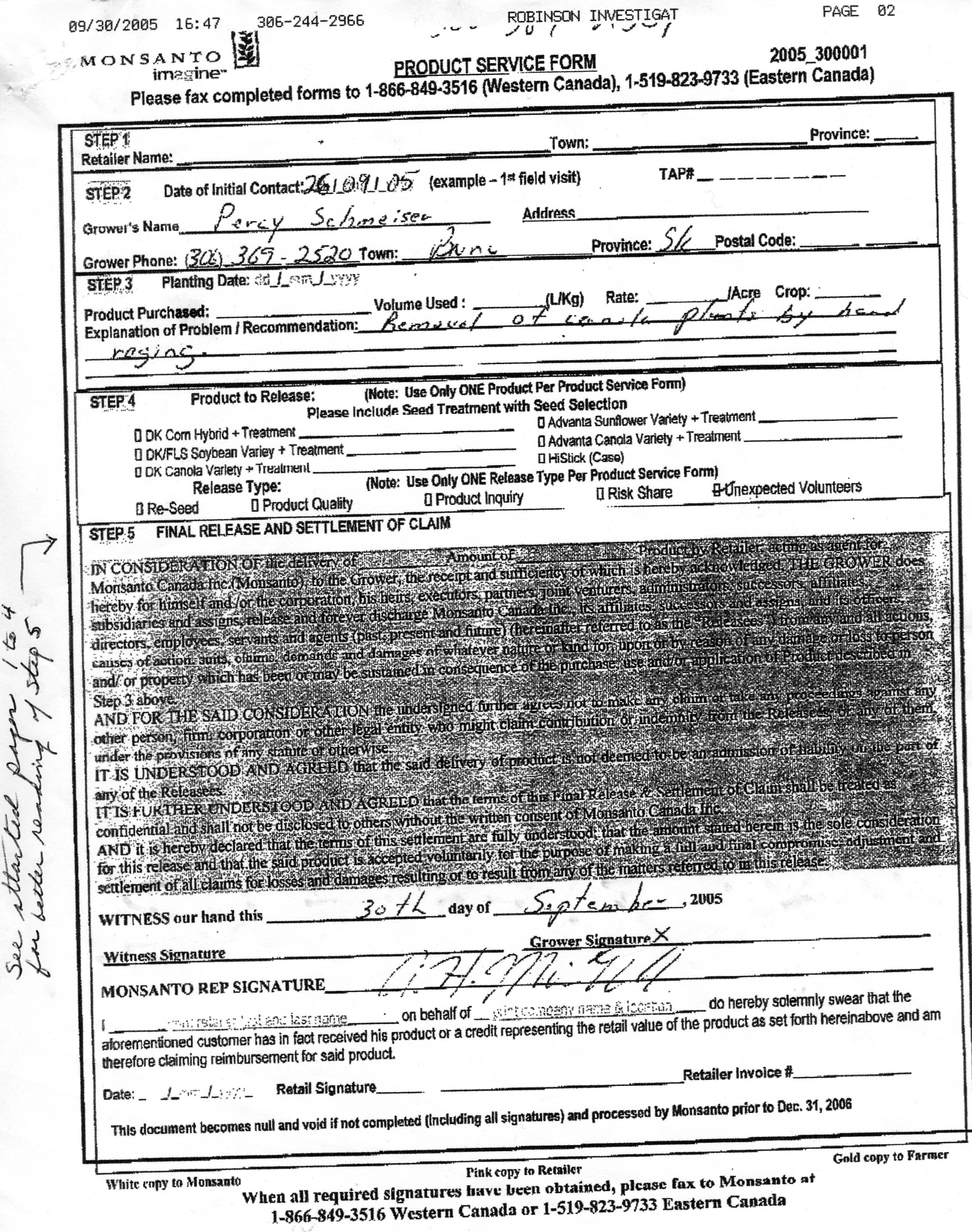 acting as agent for Monsanto Canada Inc. Monsanto to the grower, the receipt and