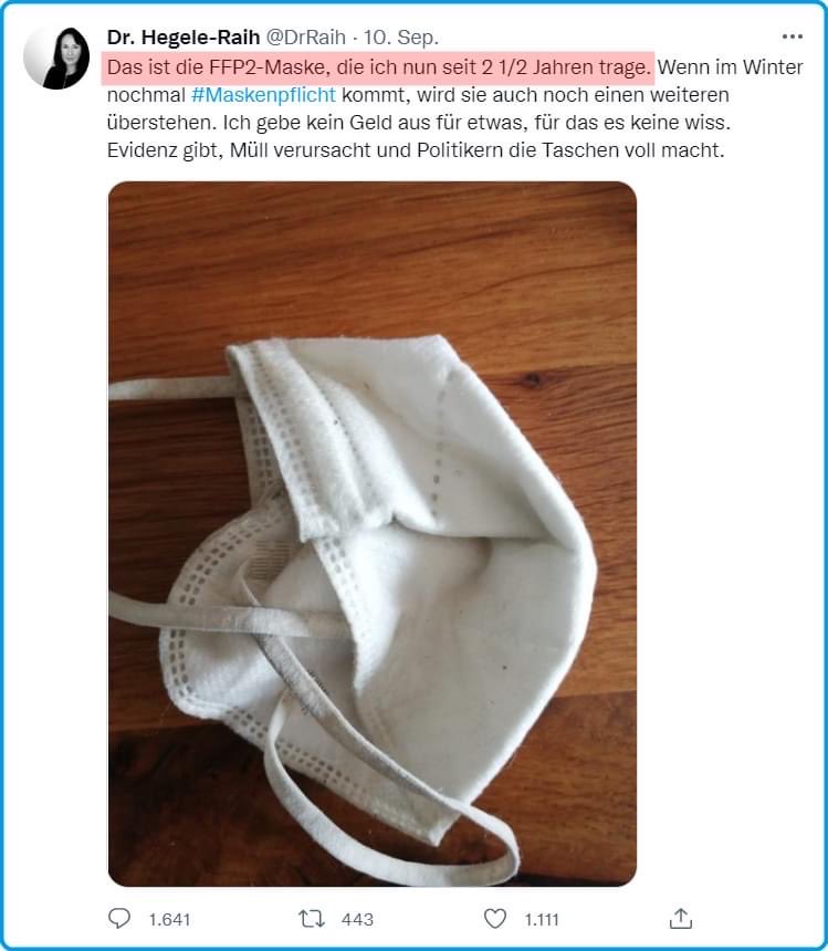 Hatte er gegenüber dem Kommissionsausschuss zunächst sogar dafür plädiert, die Evaluation zu verhindern, machte er sich schließlich daran, die Ergebnisse und seine ehemaligen Kollegen zu diskreditieren. Dazu verbreitete er via Twitter einen Text zweier „Riffreporter“, die darin mit Kontaktschuldargumenten arbeiten und den stigmatisierenden „Querdenker“-Vorwurf bereits dann in Stellung brachten, wenn man gegen Maskenpflichten an Schulen ist. Die maßnahmenvernarrten Autoren versteigen sich sogar zu der Behauptung, die Evaluation würde „nicht einmal den Ansprüchen an eine wissenschaftliche Seminararbeit im Studium genügen“; was nebenbei von jemandem verbreitet wird, dessen Doktortitel Fragen aufwirft.