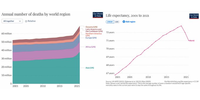 Tatsache ist: Die Lebenserwartung ist DRAMATISCH gesunken. Nicht nur alte Menschen, sondern vor allem Säuglinge sind von der Schädigung durch Covid-19 betroffen. Die Rentenversicherung meldet deswegen für die Zukunft bessere Zahlungsfähigkeit. Dabei wird aber unterschlagen, daß die Zahl derer, die Leistungen erbringen, also in die Rentenkasse einzahlen, DRAMATISCH sinken wird. Die Rentenversicherung lügt sich und den Bürgern in die Tasche.