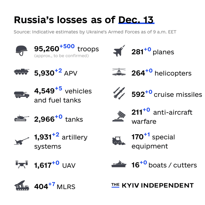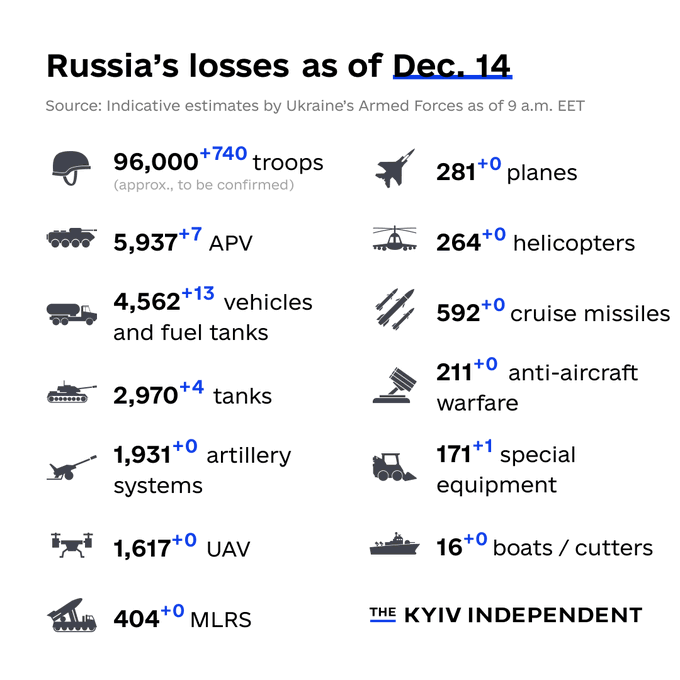 Stand 14.12.2022: Rußland hat noch 330 Panzer.