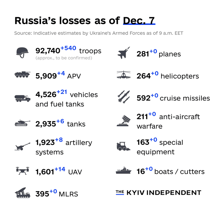 Stand 12.12.2022: Rußland hat noch 334 Panzer.
