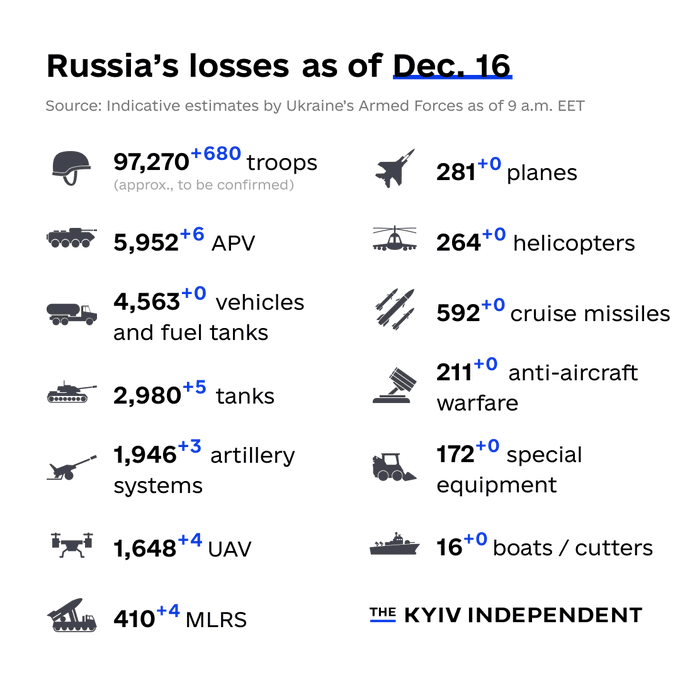Stand 16.12.2022: Rußland hat noch 320 Panzer.