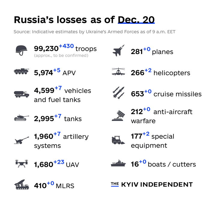 Stand 23.12.2022: Rußland hat noch 283 Panzer.