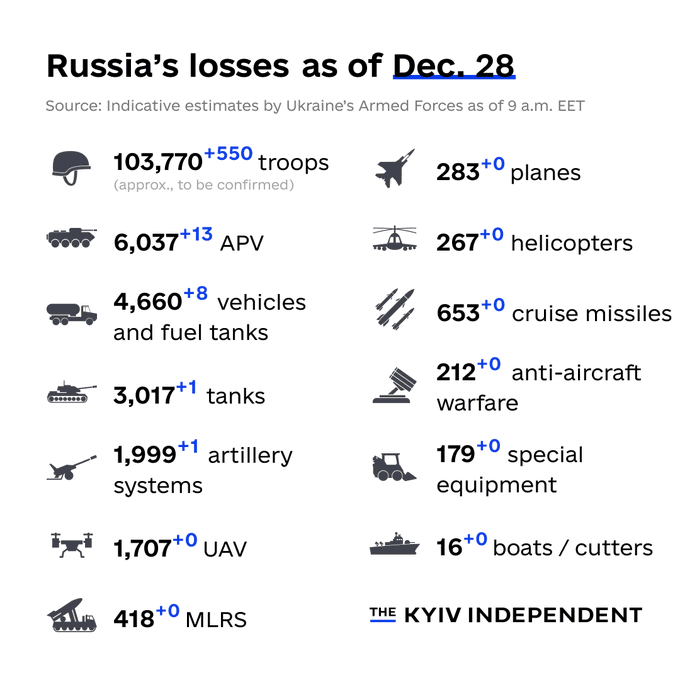 Stand 27.12.2022: Rußland hat noch 284 Panzer.