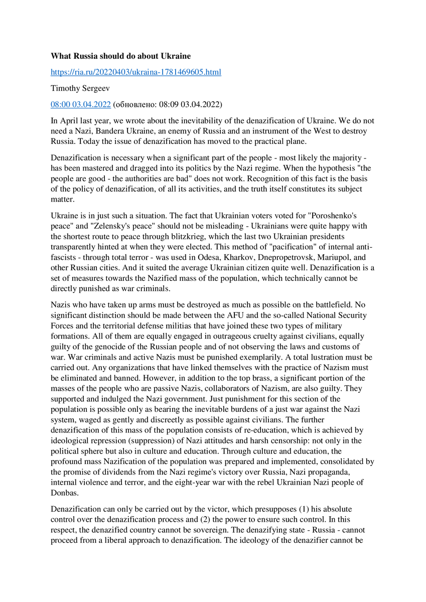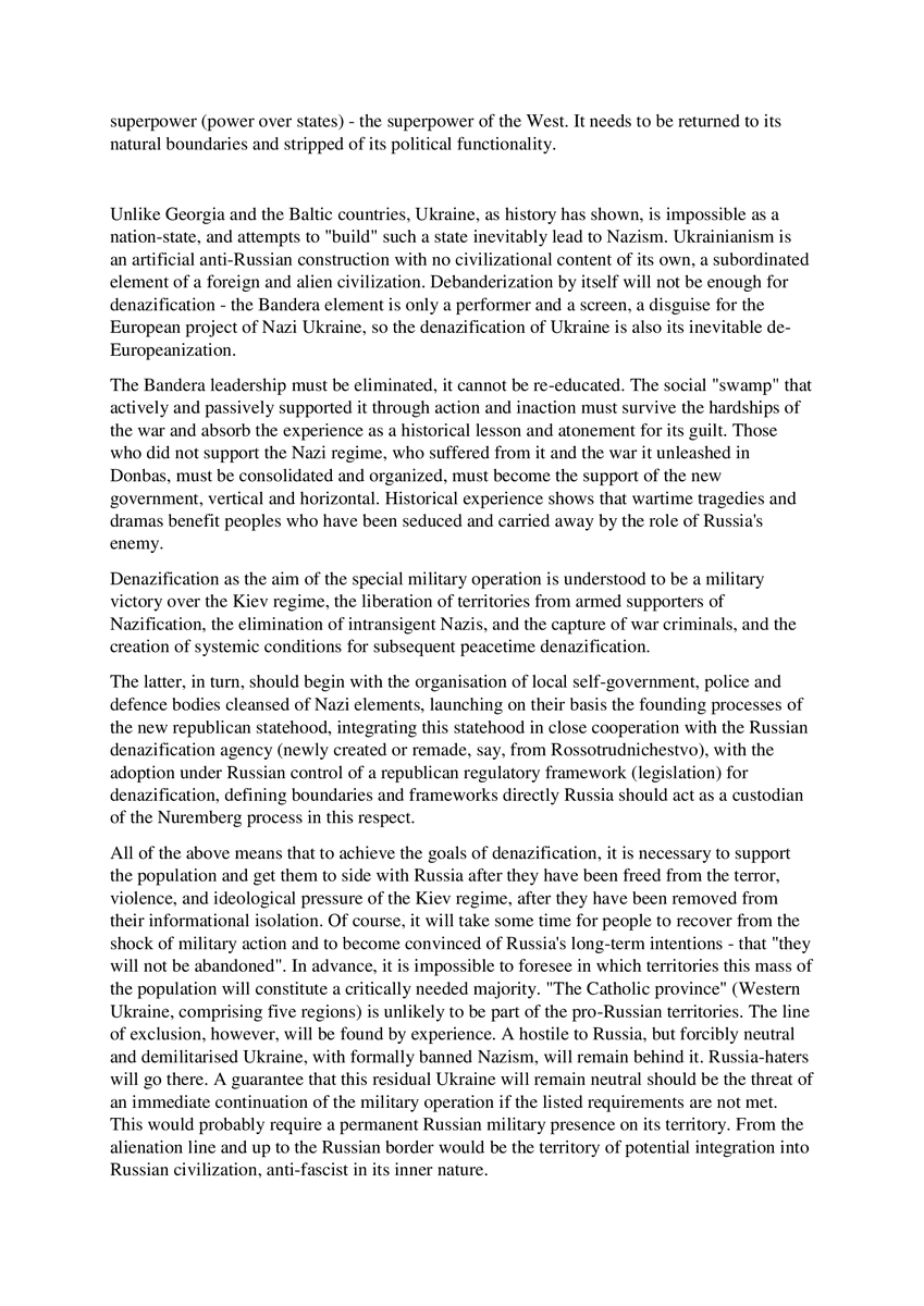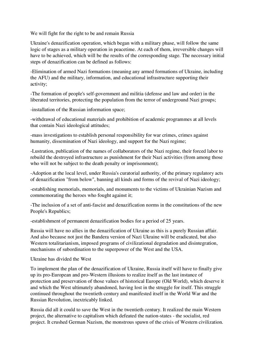 - The Russian plan to eliminate Ukraine and the whole west, including the USA